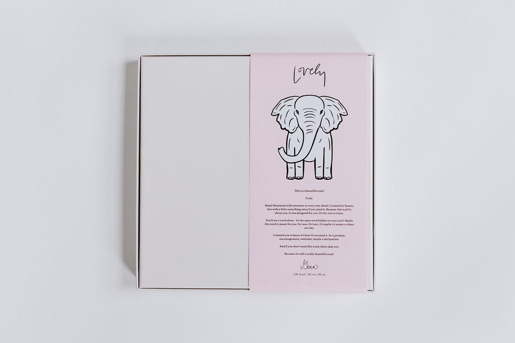 Our scarves are hand illustrated and made from 100% silk. Each scarf comes packaged in a beautiful box with packaging unique to each design. Each scarf also comes with a special word integrated into the design and on the box.