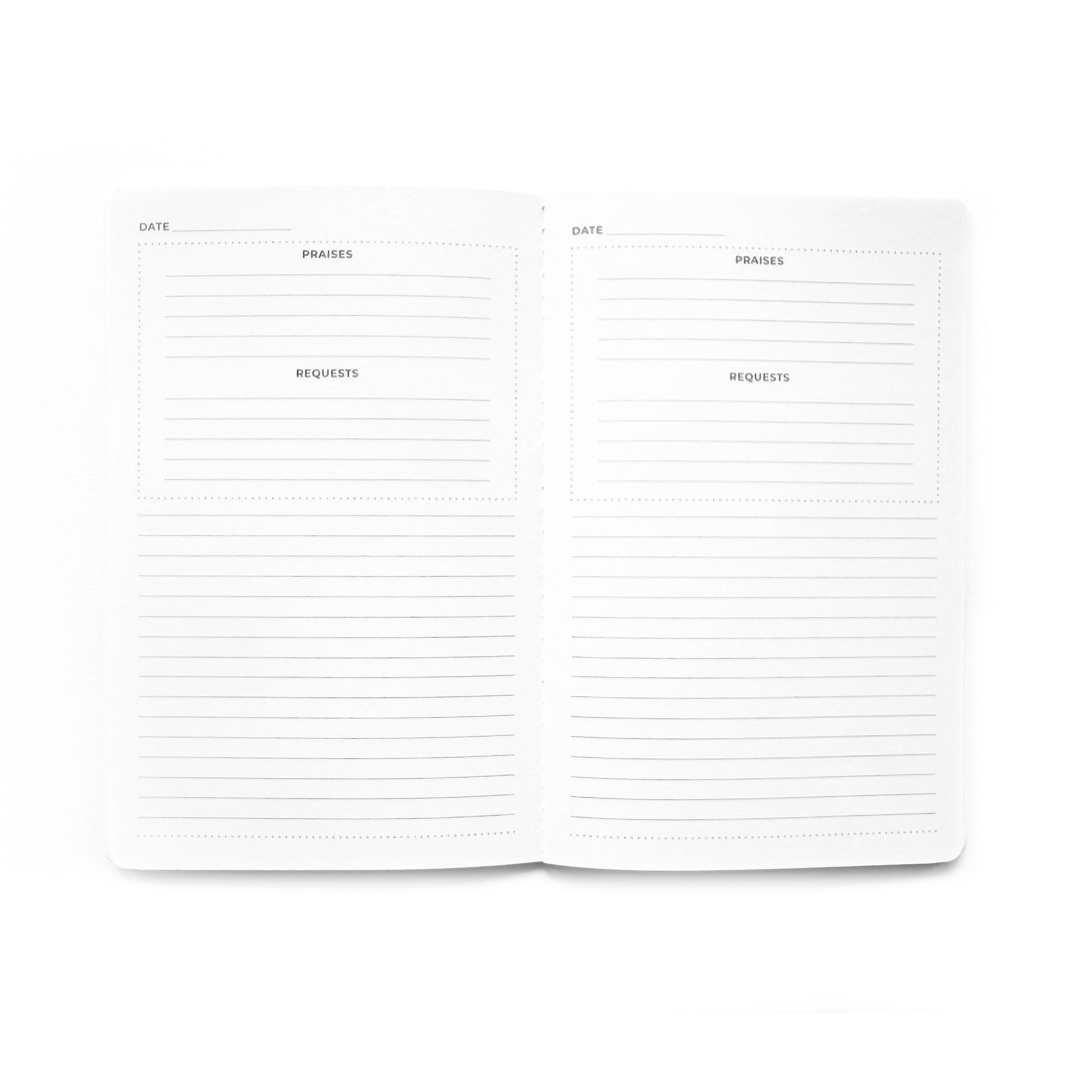 Prayer Journals feature beautiful gold foil covers and a sewn binding with 60 lined and illustrated interior pages.