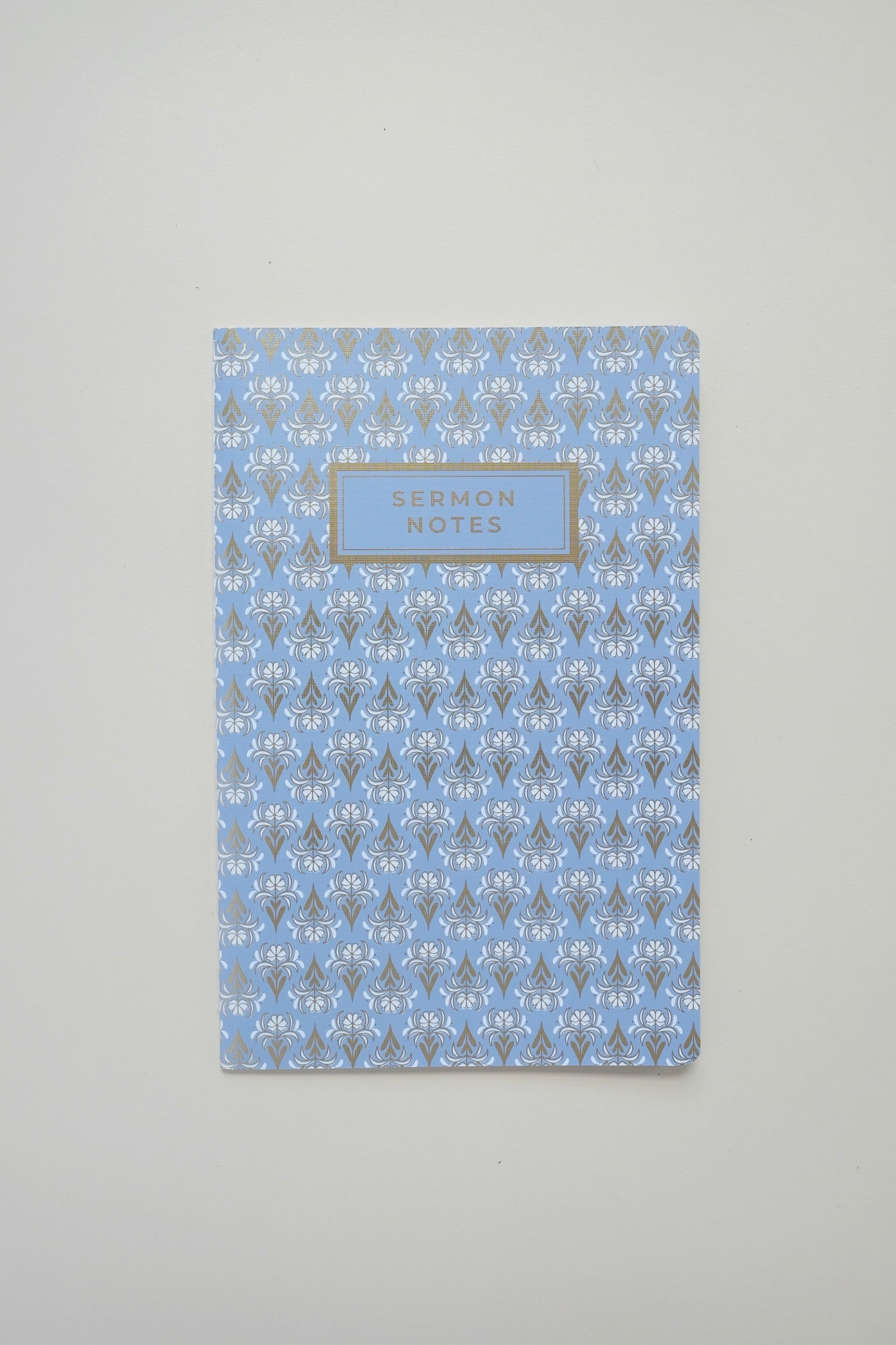 Sermon Notes features beautiful gold foil covers and a sewn binding with 31 lined and illustrated interior pages.
