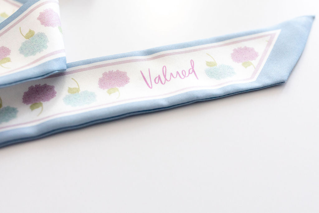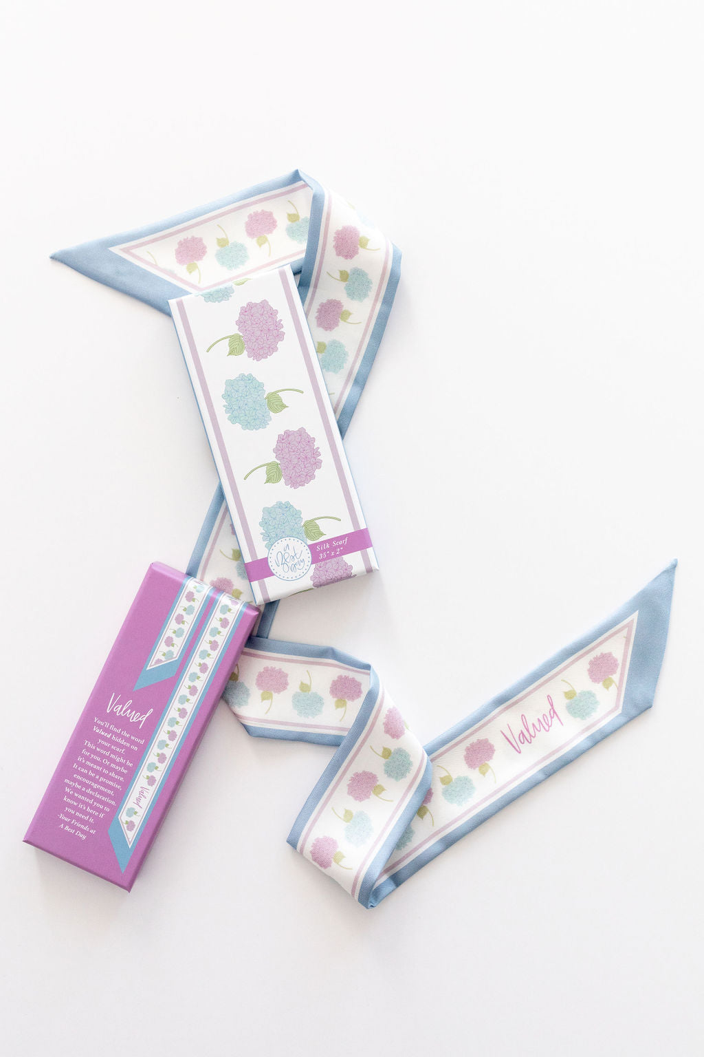 Our scarves are hand illustrated and made from 100% silk. Each scarf comes packaged in a beautiful box with packaging unique to each design. Each scarf also comes with a special word integrated into the design and on the box.